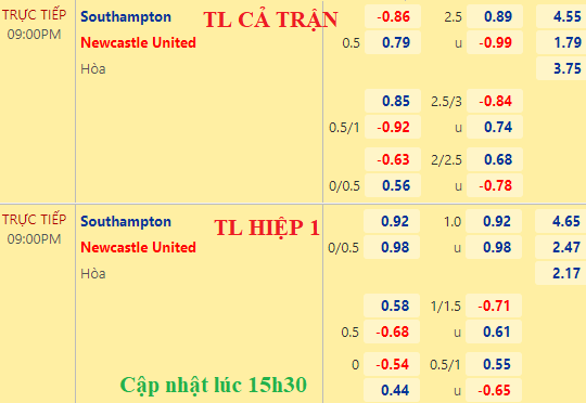 Diễn biến trên thị trường đang đem lại yếu tố bất lợi cho lựa chọn cửa trên và tài trận này. Nhưng theo quan điểm của người viết Newcastle vẫn là một địa chỉ đáng tin, đội khách có tỷ lệ chấp vượt trội so với cuộc đối đầu tương tự gần nhất, và Newcastle cũng đang có đội có thành tích tốt nhất trên giao dịch châu Á với 83.33% chiến thắng. Với phong độ hiện tại Southampton khó có thể tạo nên bất ngờ.