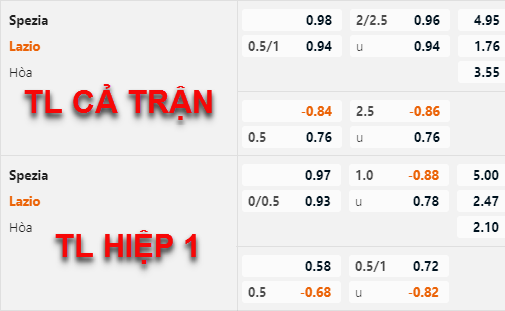 Mặc dù kèo bàn thắng cả trận vẫn giữ được sự ổn định với định mức 2 1/4 cùng lợi điểm cân bằng giữa các lựa chọn đối lập đã tồn tại suốt từ đầu phiên, tỷ lệ châu Á cả trận lại biến động theo chiều hướng bất lại cho cửa trên. Cụ thể Lazio bị điều chỉnh về kèo chính chấp 1/2 cùng lợi điểm khá cao so với kèo đầu phiên chấp 3/4. Dịch chuyển nói trên diễn ra trong hoàn cảnh phong độ của Lazio rất ấn tượng là chi tiết cho thấy nhà cái đã thay đổi quan điểm tích cực dành cho đội bóng thủ đô.