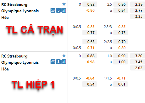 Ở những diễn biến mới nhất trên sàn giao dịch châu Á, đã không có thay đổi nào quá lớn với mức tỷ lệ chính của trận đấu khi mức kèo hoà được thua vẫn duy trì với điểm ăn thấp cho Strsbourg. Trước đối thủ mạnh, việc thây trò HLV Julien Stephan vẫn duy trì mức kèo như vậy là chấp nhận được nên hy vọng cho họ là có cơ sở.