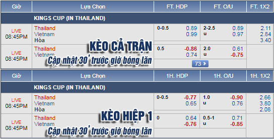 Trái với cách bố trí đội hình không quá nhiều biến động của 2 đội, trên sàn giao dịch châu Á lại đang chứng kiến sự thay đổi khi kèo chấp hòa của Thái Lan đã hạ xuống chỉ còn 1/4 cùng thang lợi nhuận không quá chênh lệch. Đây rõ ràng là tín hiệu đang khiến cho những ai tin tưởng vào đội chủ nhà phải lo lắng khi đội bóng này liên tiếp giữ thế chủ động trong phiên giao dịch ngày hôm nay.