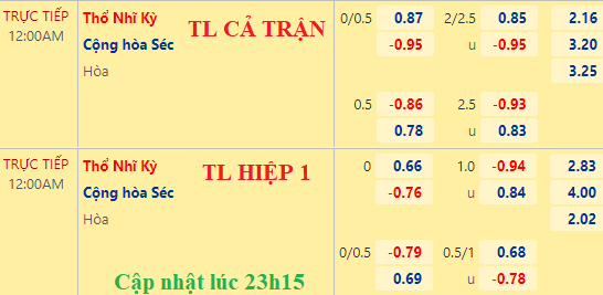 Chốt kèo trực tiếp trận Thổ Nhĩ Kỳ vs CH Séc (00h00):
