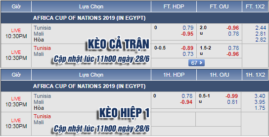 CHỐT KÈO TRỰC TIẾP trận Tunisia vs Mali (21h30)