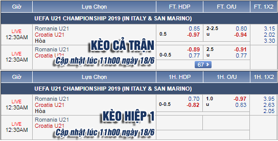 AEGoal.net chốt kèo trực tiếp trận U21 Romania vs U21 Croatia diễn ra lúc 23h30 ngày 18/6 sau khi dựa trên tính toán, chuyển động về kèo châu Á và đội hình ra sân của 2 đội.