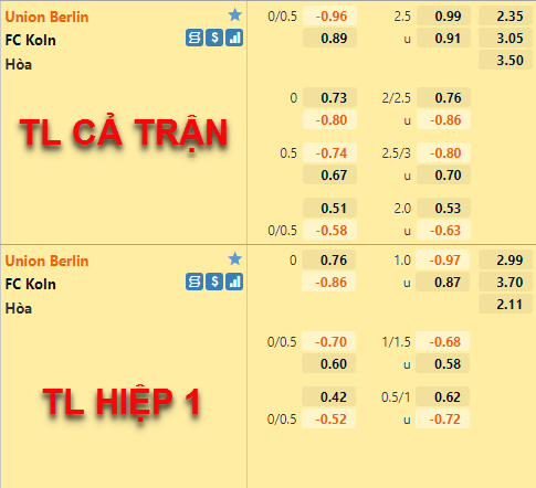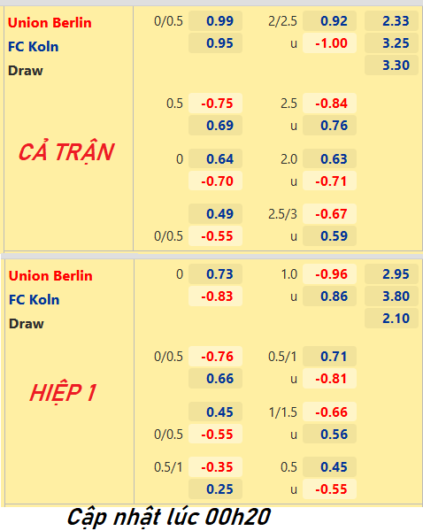 Trong khi đó, Union Berlin cũng không có sức bật nào trên sàn giao dịch hiện nay. Chỉ số chấp tối thiểu 1/4 cho thấy cửa trên khá mong manh so với chiều ngược lại. Các chuyên gia vì thế đánh giá cao khả năng FC Koln có điểm hơn ở trận đấu này.