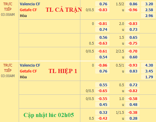 AEGoal chốt kèo bóng đá trực tiếp trận Valencia vs Getafe diễn ra lúc 03h00 ngày 2/11 trong khuôn khổ giải VĐQG Tây Ban Nha sau khi dựa trên tính toán, chuyển động về kèo châu Á và đội hình ra sân của 2 đội.