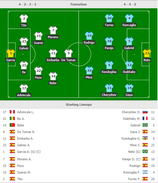 Trước CLB đang đứng áp chót trên BXH mà Valencia lại có dấu hiệu mất giá như vậy là điều không khả quan với bầy dơi. Trận này HLV Marcelino lại cất Guedes, Gameiro hay Garay trên ghế dự bị. Điều đó chắc chắn ảnh hưởng đến sức mạnh của các vị khách. Với tỷ lệ và đội hình như dưới đây thì nên tin vào chủ nhà và một cuộc chiến cởi mở!