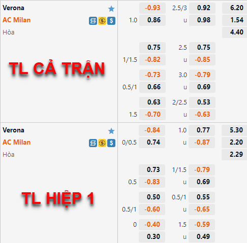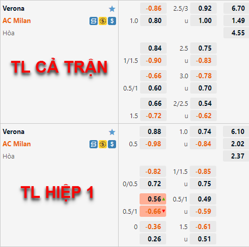 Tham khảo: AC Milan -1/2 Hiệp 1