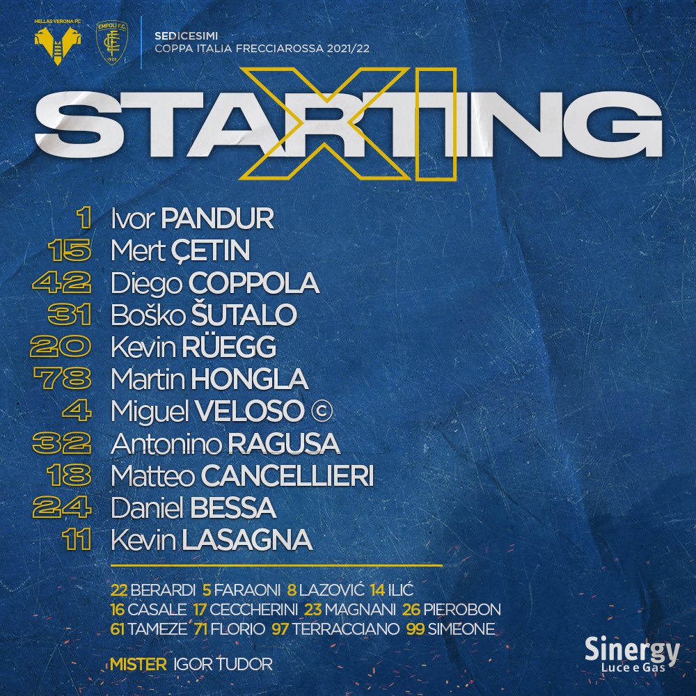 Verona (3-4-1-2): Lorenzo Montipo; Federico Ceccherini, Nicolo Casale, Giangiacomo Magnani; Marco Faraoni, Darko Lazovic, Miguel Veloso, Adrien Tameze; Kevin Lasagna; Giovanni Simeone, Gianluca Caprari