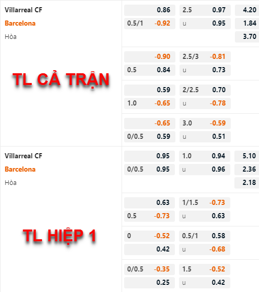 Tỷ lệ chấp của Barcelona không có nhiều biến động so với trước đây, đội khách vẫn có mức chấp chính 3/4, điểm ăn của 2 cửa không có thay đổi đáng kể so với trước đây. Trong khi đó bên phía tỷ lệ tài xỉu của trận đấu lại có những thay đổi rõ rệt, mốc chính 2 3/4 trước đây đã được nhà cái thay thế bằng mốc 2 1/2 ở thời điểm hiện tại.