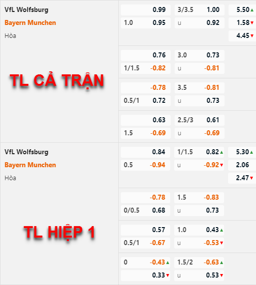 Tỷ lệ chấp của đội khách không có nhiều thay đổi thời gian vừa qua, Bayern Munich tiếp tục duy trì mức chấp 1 hoà. Bên phía tỷ lệ tài xỉu của trận đấu có những biến động rõ ràng hơn, mốc 3 1/4 vẫn được duy trì là mốc chính của trận đấu nhưng điểm ăn của cửa xỉu đã được điều chỉnh giảm so với trước đây.