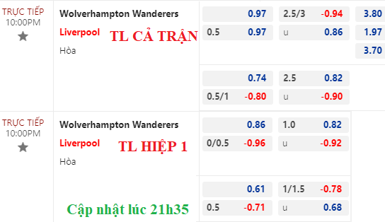Liverpool dù vẫn chấp hòa nhưng điểm ăn có xu hướng tăng, trong khi tài xỉu vẫn là 2 3/4 cùng điểm bỏ. Trước đối thủ đang ở khu vực cuối mà Liver không có sức bật là điều đáng lo ngại, nhất là khi họ chẳng có chuyển biến gì tích cực từ nhân sự đến lối chơi.