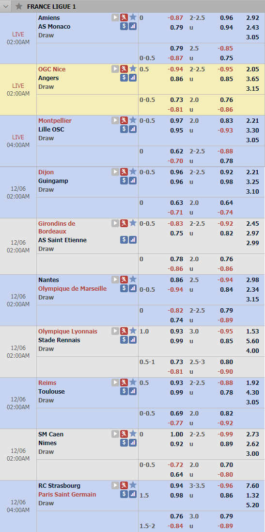 Cập nhật tỷ lệ châu Á vòng 16 Ligue 1