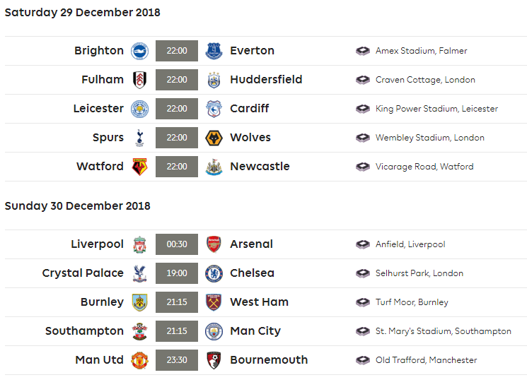 Trận đấu đang chú ý nhất vòng này là cặp đôi Liverpool chủ nhà và Arsenal. Liverpool đang rơi vào giai đoạn gần như khó khăn nhất của mùa giải với lịch thi đấu dầy đặc và liên tiếp gặp những đối thủ mạnh, vòng đấu này là Arsenal và tiếp theo là Manchester City ở vòng đấu đầu tiên của năm 2019.