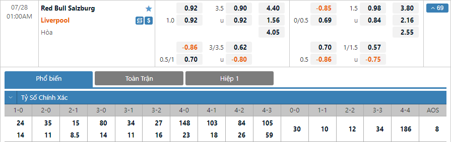 Cùng chuyên gia AEGOAL dự đoán tỷ số trận RB Salzburg vs Liverpool diễn ra lúc 01h00 ngày 28/7 trong khuôn khổ Giao hữu CLB.