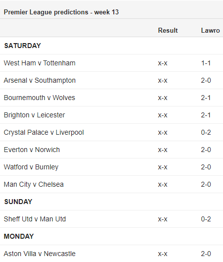 Cùng chuyên gia hàng đầu của BBC, Mark Lawrenson dự đoán kết quả các trận đấu thuộc vòng 13 giải Ngoại hạng Anh, Premier League.