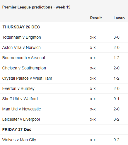 Cùng chuyên gia hàng đầu của BBC, Mark Lawrenson dự đoán kết quả các trận đấu thuộc vòng 19 giải Ngoại hạng Anh, Premier League.