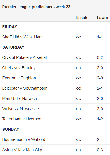 Cùng chuyên gia hàng đầu của BBC, Mark Lawrenson dự đoán kết quả các trận đấu thuộc vòng 22 giải Ngoại hạng Anh, Premier League.
