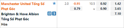 Tỷ lệ tài xỉu phạt góc của trận đấu đang được công khai ở mức 10 1/2, đây là mức tài xỉu phạt góc tương đối cao khi 4/5 cuộc đối đầu gần nhất đều ghi nhận không nhiều tình huống phạt góc (ít hơn 10 tình huống phạt góc). Các trận đấu gần đây của cả Man Utd và Brighton đều có những kết quả tương tự.