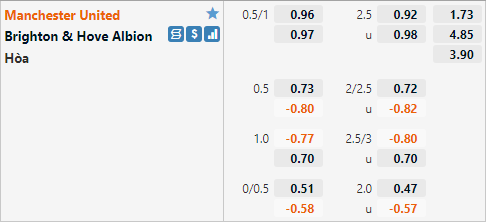 Với lợi thế sân nhà và lực lượng vượt trội Man Utd đang có tỷ lệ chấp 3/4 trên sàn giao dịch châu Á. Ở cuộc đối đầu tương tự gần nhất Man Utd cũng có tỷ lệ chấp 3/4 và họ đã kết thúc trận đấu với chiến thắng 2-1 tỷ số vừa đủ để vượt qua rao cản do nhà cái đặt ra. Quá khứ đang ủng hộ các Quỷ đỏ khi họ thắng cả 6 lần đối đầu với Brighton gần nhất, và 5 cuộc chạm trán gần nhất của hai đội diễn ra trên sân Old Trafford.