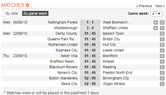 Những thông tin về lịch thi đấu cũng như tỷ lệ ở vòng 4 giải Hạng Nhất Anh được AEGoal.net tổng hợp từ các nguồn uy tín ở bài viết dưới đây.