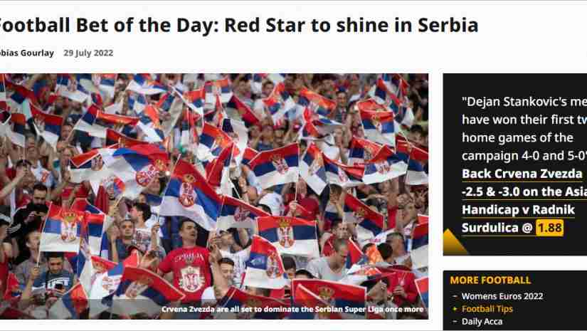 Mỗi ngày nhà cái Betfair sẽ lựa chọn ra 1 trận cầu sáng giá nhất, chuyên mục có tên là Football Best of the Day, cùng AEGoal tham khảo lựa chọn tốt nhất trong ngày 29/07/2022 từ nhà cái hàng đầu nước Anh.