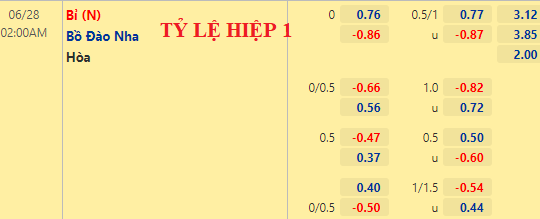 Phân tích kèo hiệp 1 trận Bỉ vs Bồ Đào Nha
