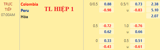 Phân tích kèo hiệp 1 trận Colombia vs Peru