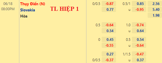 Phân tích kèo hiệp 1 trận Thụy Điển vs Slovakia