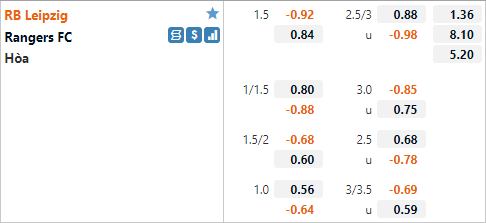 Phân tích kèo trận RB Leipzig vs Rangers (02h00)