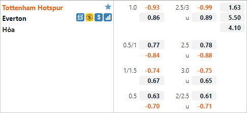 Tottenham đang được nhà cái đánh giá ở cửa trên với tỷ lệ chấp 1 hoà trên sàn giao dịch châu Á. Đây là mức tỷ lệ chấp tương đối cao của đội chủ nhà, ở trận đấu tương tự gần nhất Spurs chỉ có tỷ lệ chấp 1/2. Tottenham không có được kết quả tốt khi đối đầu với Everton thời gian gần đây khi hoà 3 và thua 1 ở 4 lần đối đầu gần nhất. Nhưng trận đấu này sẽ là một cơ hội tốt cho đội chủ nhà khi đối thủ của họ đang thi đấu sa sút.