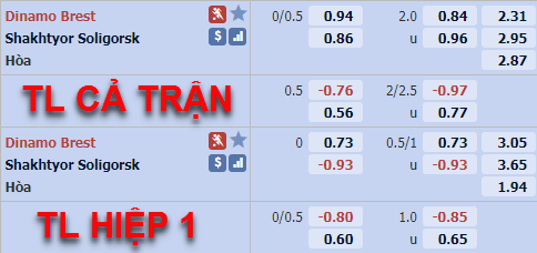 Trên sàn giao dịch châu Á, với lợi thế sân nhà Dinamo Brest được nhà cái đánh giá cao hơn với tỷ lệ chấp 1/4 cả trận và mức điểm ăn tương đối cân bằng, trong khi đó ở tỷ lệ hiệp 1 đội chủ nhà cũng nhỉnh hơn với tỷ lệ 0:0 và mức điểm ăn ít bên phía Dinamo Brest.