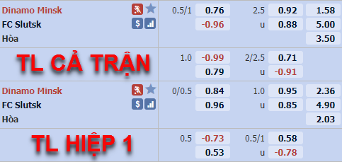 Ở thời điểm hiện tại Dinamo Minsk cũng có những kết quả không tồi trong 45 phút đầu tiên khi thắng kèo hiệp 1 2 lần trong 4 trận đấu gần nhất. Trong khi đó Slutsk thi đấu rất ổn định trên sân khách, mặc dù đều bị đánh giá thấp hơn trong cả 2 trận sân khách kể từ đấu mùa giải nhưng 2 trận đấu đó họ đều có kết quả chiến thắng ngay trong 45 phút thi đấu đầu tiên của trận đấu. Đặt niềm tin vào Slutsk trong hiệp 1 trận đấu này không phải là một lựa chọn quá mạo hiểm.
