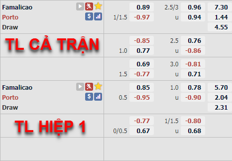 Trên sàn giao dịch châu Á lúc này Porto đang được nhà cái đánh giá cao hơn với tỷ lệ chấp 1 1/4. Ở bên phía kèo hiệp 1 thì đội khách đang có tỷ lệ chấp chính là 1/2, đây là mức tỷ lệ tương đối hợp lý khi Porto có đẳng cấp vượt trội so với đối thủ. Ở trận đấu lượt đi Porto với lợi thế sân nhà đã dễ dàng vượt quá đối thủ với chiến thắng 3-0.
