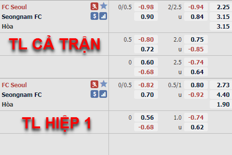 Trên sàn giao dịch châu Á, FC Seoul đang có tỷ lệ chấp 1/4 đây là mức tỷ lệ chấp hơi thấp của đội chủ nhà nếu nhìn vào quá khứ đối đầu của hai đội. Ở tỷ lệ hiệp 1 đội chủ nhà cũng có tỷ lệ chấp 1/4 nhưng với mức điểm ăn bỏ tương đối sâu.ư