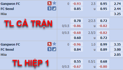 AEGoal.net phân tích kèo hiệp 1 và tài xỉu trận Gangwon vs FC Seoul diễn ra lúc 14h30 ngày 10/05 trong khuôn khổ vòng 1 giải VĐQG Hàn Quốc.