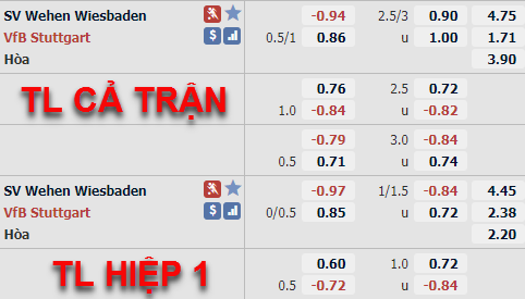 Phân tích tỷ lệ hiệp 1, tài xỉu cả trận Wehen Wiesbaden vs Stuttgart