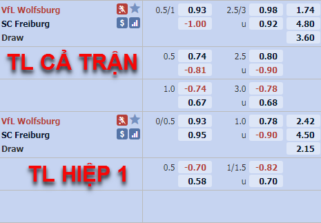 Phân tích tỷ lệ hiệp 1, tài xỉu cả trận Wolfsburg vs Freiburg (20h30)