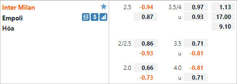 Việc nhà cái đưa ra mức chấp rất cao của Inter Milan trận này cho thấy giới chuyên môn đang tin tưởng và khát khao giành 3 điểm của đội chủ nhà. Về mặt thực lực Inter Milan hoàn toàn đủ khả năng có 3 điểm không mấy khó khăn trước đội thủ không còn mục tiêu như Empoli.