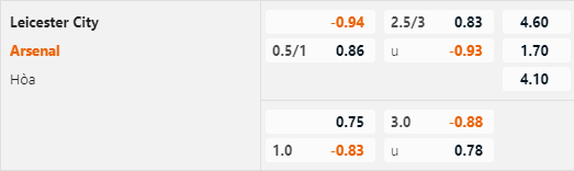 Tỷ lệ tài xỉu của trận đấu được nhà cái châu Á công khai ở mức 2 3/4 và điểm ăn ít bên phía cửa tài. Đây là mức tài xỉu hoàn toàn hợp lý với lối chơi cởi mở của Arsenal và khả năng phong ngự không tốt của Leicester mùa này.