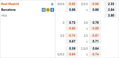 Chuyên gia AEGoal phân tích về tỷ lệ châu Á cũng như tài xỉu trận đấu giữa Real Madrid vs Barcelona diễn ra lúc 21h15 ngày 16/10 trong khuôn khổ giải VĐQG Tây Ban Nha.