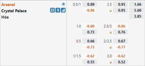 Với lợi thế sân nhà Arsenal đang được nhà cái châu Á đánh giá ở cửa trên với tỷ lệ chấp 3/4 và mức điểm ăn ít của cửa trên. Ở trận đấu tương tự của mùa giải trước các pháo thủ cũng có tỷ lệ chấp 3/4 nhưng họ chỉ có thể giữ lại 1 điểm sau khi trận đấu kết thúc với kết quả hòa 0-0. Arsenal thời gian gần đây thường gặp khó khăn khi tiếp đón Crystal Palace, họ không thắng 3 lần chạm trán với Palace trên sân Emirates gần nhất.