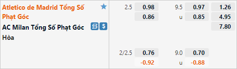 AEGoal soi kèo tổng bàn thắng và kèo phạt góc trận đấu giữa Atletico Madrid vs AC Milan diễn ra lúc 03h00 ngày 25/11 trong khuôn khổ Cúp C1 Châu Âu.
