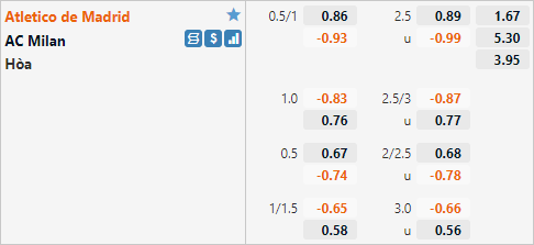 Trong khi ở phía bên kia AC Milan gần như đã hết hy vọng đi tiếp. Đội khách không còn nhiều sức ép về mặt kết quả ở trận đấu này và nhiều khả năng vẫn sẽ duy trì lối chơi cởi mở như thường lệ. Với những lý do trên thì lựa chọn cửa tài trận đấu này sẽ là một lựa chọn hợp lý.