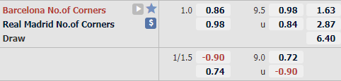 Tỷ lệ tài xỉu phạt góc của trận đấu đang được công khai ở mức 9 1/2. Nhìn vào các trận El Classico trong quá khứ có thể thấy những trận đấu đối đầu của hai đội gần đây không có nhiều tình huống phạt góc. Cụ thể trong 6 lần đối đầu gần nhất thì chỉ có 2 lần trận đấu có nhiều hơn 9 tình huống phạt góc. Ở thời điểm hiện tại có thể thấy lực lượng tương đối cân bằng và nhiều khả năng trận đấu cũng không thể diễn ra theo một chiều, đây cũng chính là một trong nhưng lý do quan trọng để lựa chọn cửa xỉu phạt góc.