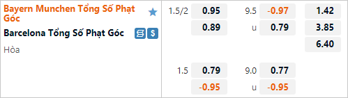 9 1/2 là tỷ lệ tài xỉu phạt góc của trận đấu đang được công khai trên sàn châu Á. Đây là mức tài xỉu không có gì bất thường, 4/5 cuộc đối đầu gần nhất chỉ ghi nhận nhiều nhất là 7 tình huống phạt góc 1 trận. Trong khi đó 3/4 trận gần nhất của Bayern Munich cũng có kết quả xỉu phạt góc. Rất có thể trận đấu này cũng có kết quả tương tự khi được dự đoán sẽ diễn ra cởi mở với nhiều bàn thắng được ghi.