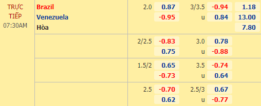 Soi kèo tài xỉu, phạt góc trận Brazil vs Venezuela (07h30)