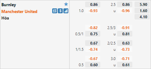 Man Utd đang có tỷ lệ chấp 1 hoà và mức điểm bỏ trên sàn giao dịch châu Á. Đây là mức tỷ lệ chấp tương đối thấp của đội khách khi ở cuộc đối đầu tương tự gần nhất Man Utd đã có tỷ lệ chấp 1 1/2. Nhưng quá khứ đang ủng họ đội khách khi họ chỉ thua kèo 1/5 lần làm khách của Burnley gần nhất.