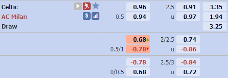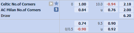 Trận đấu này sẽ là một thử thách của Celtic khi họ phải đối đầu với AC Milan. Ra sân ở vị thế cửa dưới chắc chắn Celtic sẽ không mạo hiểm đẩy cao đội hình giành chiến thắng, có lẽ mục tiêu kết thúc trận đấu với kết quả hoà là mục tiêu dễ dàng hơn. Đây là một trong những lý do có thể lựa chọn cửa ít bàn thắng trận này.