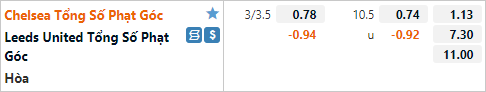 Nhưng những trận đấu gần đây của hai đội đều không ghi nhận quá nhiều tình huống phạt góc. Với Chelsea là 2/3 trận gần nhất đều có ít hơn 11 tình huống phạt góc, Leeds Utd cũng có kết quả tương tự. Với dự đoán trận đấu diễn ra với thế trận sôi nổi thì có lẽ lựa chọn của xỉu phạt góc trận này chưa chắc đã phải là một lựa chọn mạo hiểm.