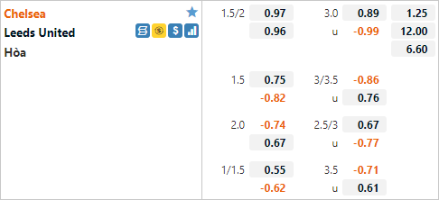 Với lợi thế sân nhà và đẳng cấp vượt trội Chelsea đang được nhà cái châu Á tin tưởng khi đưa ra mức tỷ lệ chấp là 1 3/4 cho trận đấu này. Đây là mức chấp cao hơn hẳn trận đấu tương tự của mùa giải trước khi Chelsea chỉ có tỷ lệ chấp 1 1/4, điều này cũng không có gì bất thường bởi Leeds mùa giải này đã không còn duy trì được phong độ ấn tượng như mùa giải trước.